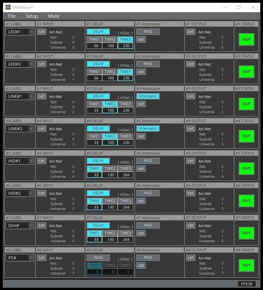 DMXの値を減衰(ATTENUATE)させる機能もあります。