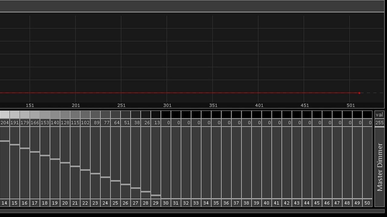 ・画面右下[MasterDimmer]の上に表示されている[%](若しくは[val])をクリックすると、フェーダ値の表示形式が切り替わります。