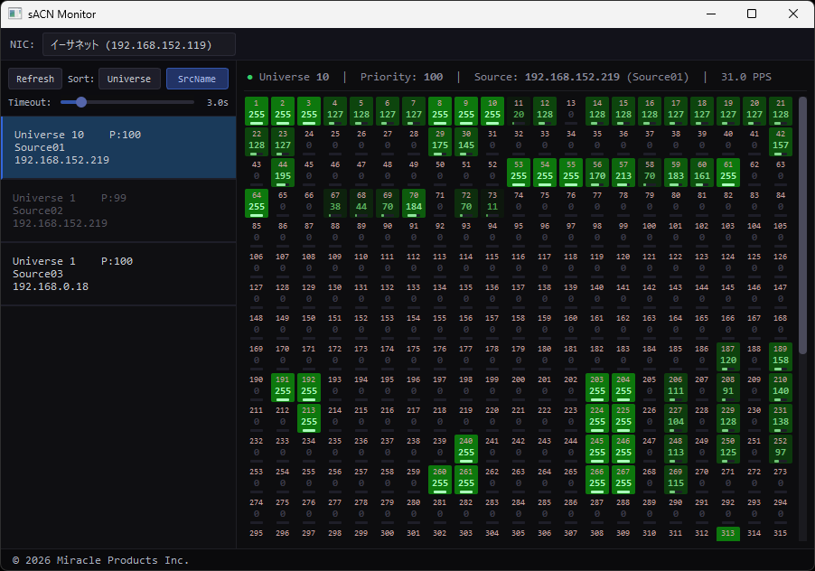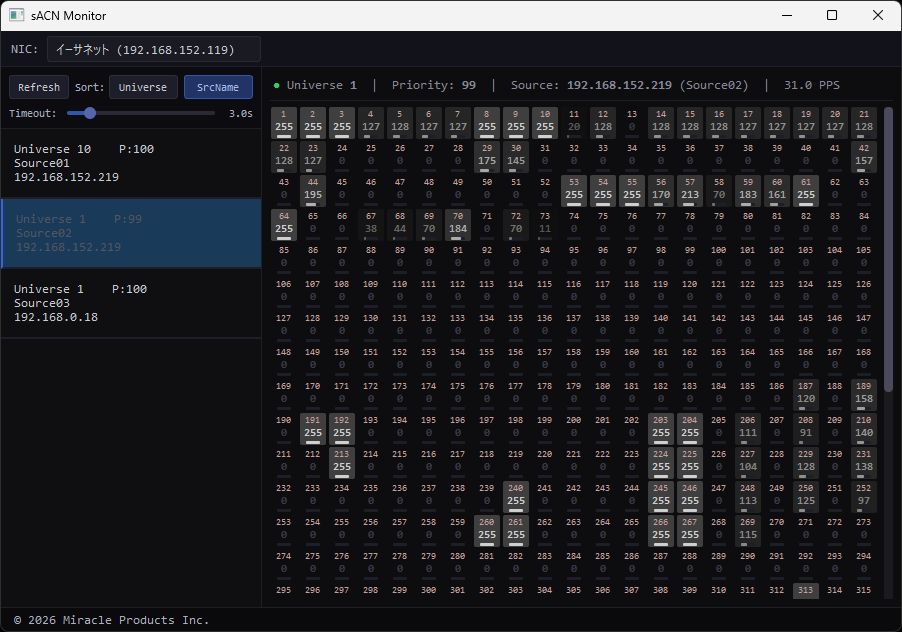 sACNのリアルタイムモニタリングツールです。